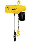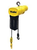 Yale YJL / YJL-V Electric Chain Hoist: Standard Features: multiple disc motor brake, overload clutch, and adjustable limit switches. YJL-V is a variable speed version. Capacity 1/4 - 2 Ton Lifting Speed : 8 - 32 FPM Capacities from 1/4 to 2 Tons Metric Rated. Voltages - 115/230 - single phase; 230/460, 208, 380, 415, 575 - 60 and 50 hertz available Weather Resistant NEMA 3R enclosure. Increased chain and sheave engagement 25% over hoists with conventional four pocket sheaves Mechanical Overload Protection Device protects hoist, operator, and supporting structures Limit Switches adjustable to regulate upper and lower load travel Multiple Disc Motor Brake heavy-duty design for reliable operation Precision machined alloy steel gears run in oil bath for longer, quieter operation Manual and Motorized trolleys in single and dual speed models Dual tread trolley wheels fit either flat or tapered I-Beams Trolley wheel also available in bronze or stainless steel - Patented track wheels are available